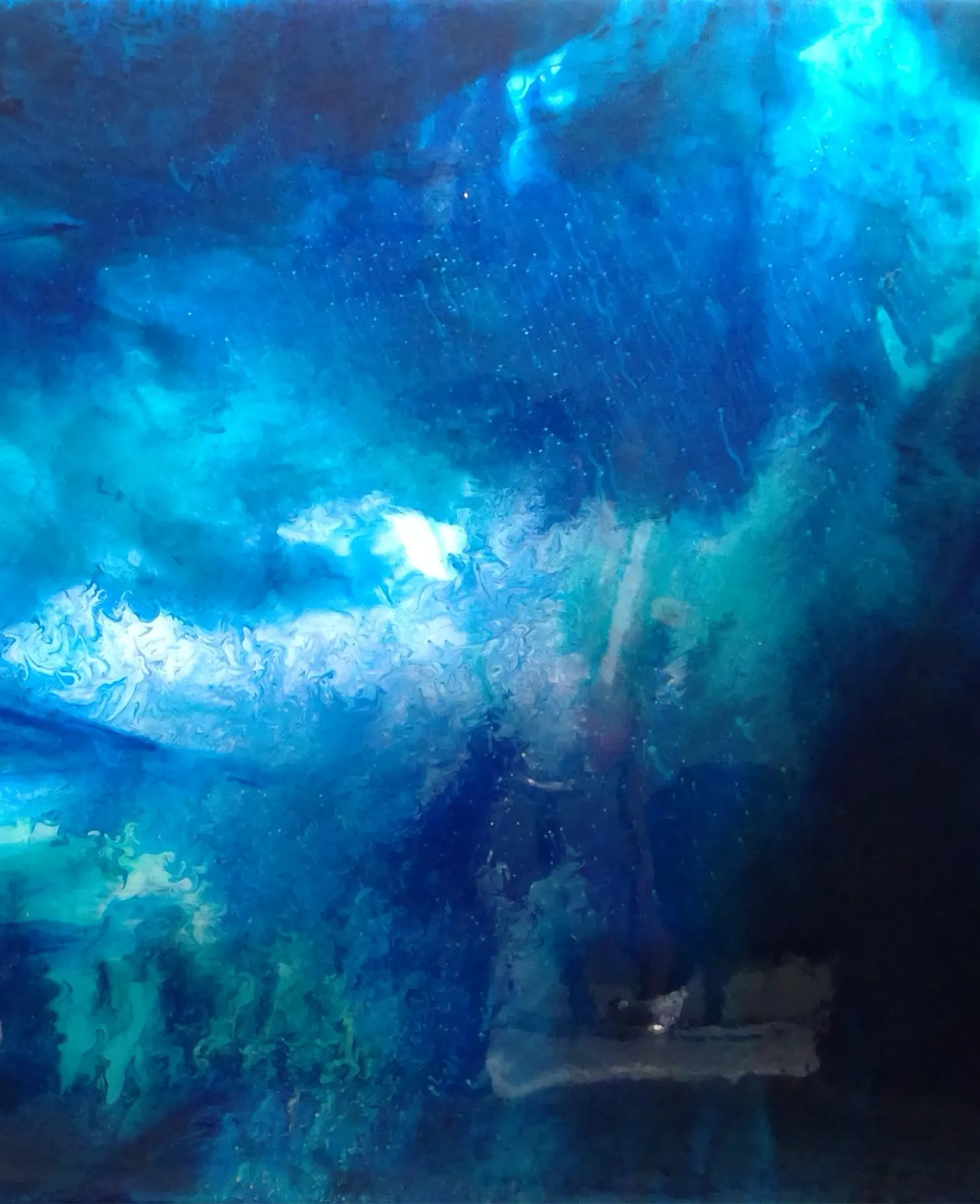 Using various mixtures of acrylic, ink, watercolor and resin, I explore the intersection of different materials and polarities. Created from a space of soul connection, it's always a unique journey and the result creates immersive visual experiences.